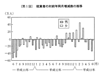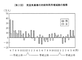 完全失業率は五・〇%と、前年同月に比べ〇・三ポイントの上昇となっている。男女別にみると、男性は五・二%と〇・四ポイントの上昇、女性は四・七%と〇・二ポイントの上昇となっている。