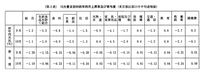 ▽消費者物価指数の動向(東京都区部十月中旬速報値)………総 務 省