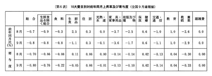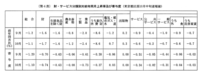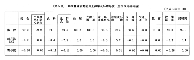 なお、総合指数は、平成十一年九月以降二十六か月連続で前年同月の水準を下回っている。