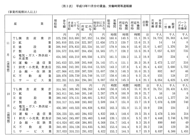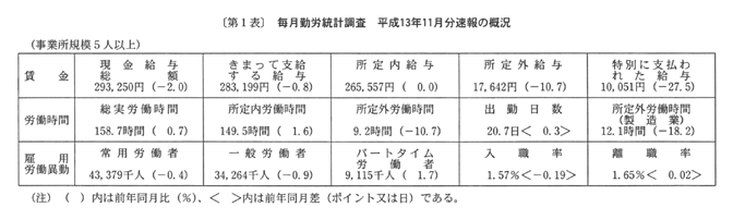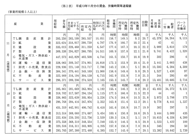 また、特別に支払われた給与は一万五十一円、前年同月比は二七・五%減であった。