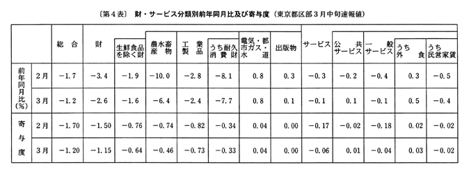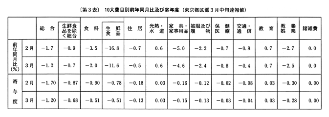 ◇三月の東京都区部消費者物価指数の動向