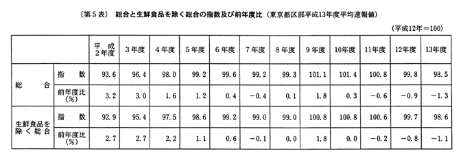 ◇平成十三年度平均速報値東京都区部消費者物価指数の動向
