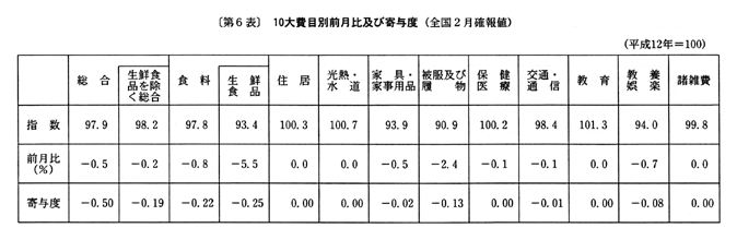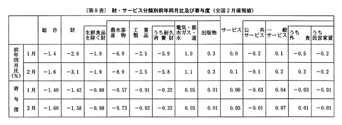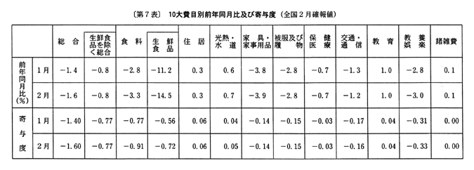 ◇二月の全国消費者物価指数の動向