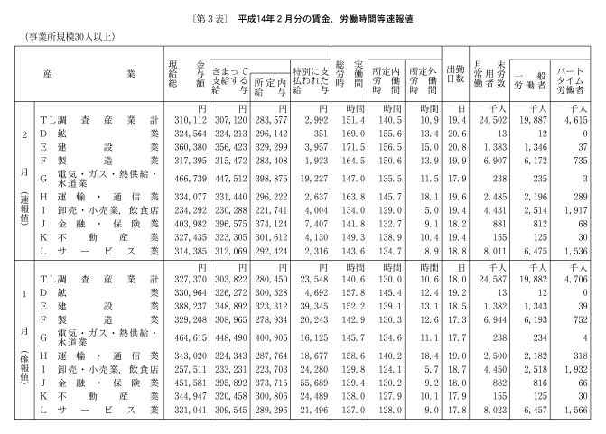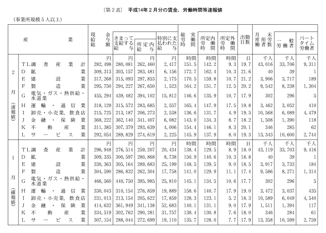 ▽毎月勤労統計調査(二月)…………………………………厚生労働省