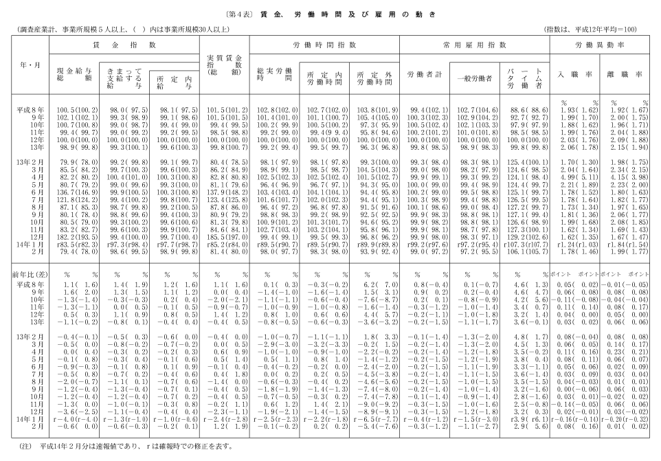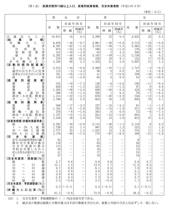 ▽労働力調査(三月及び平成十四年一〜三月平均)………総 務 省