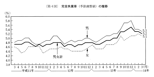 男女別にみると、男性は五・三%、女性は五・一%と、前月に比べ男女とも〇・一ポイントの低下となっている。