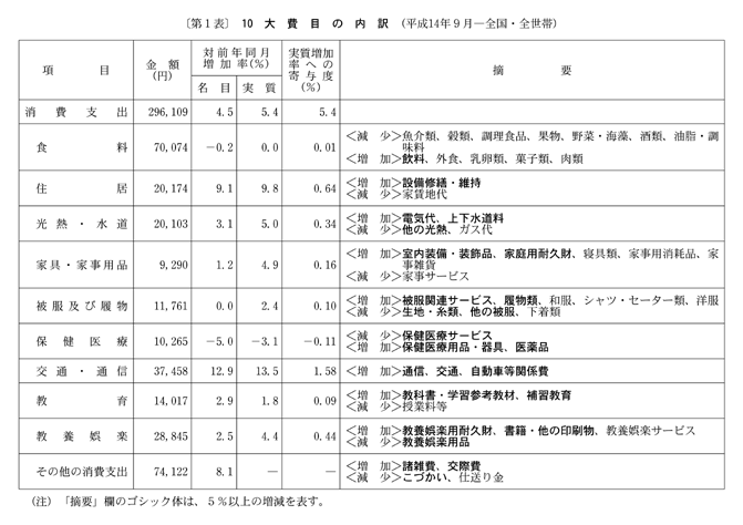 平成十四年七月の消費者物価指数…………9・11…(14)