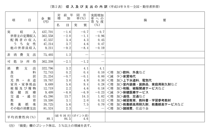 平成十四年四〜六月期平均家計収支………9・25…(23)