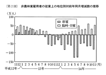 ・臨時雇…六百三十三万人と、六十二万人(一〇・九%)増、十一か月連続の増加