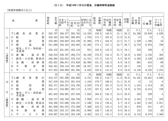○三十〜四百九十九人規模…一千八百十万人と、五万人(〇・三%)減、二か月連続の減少