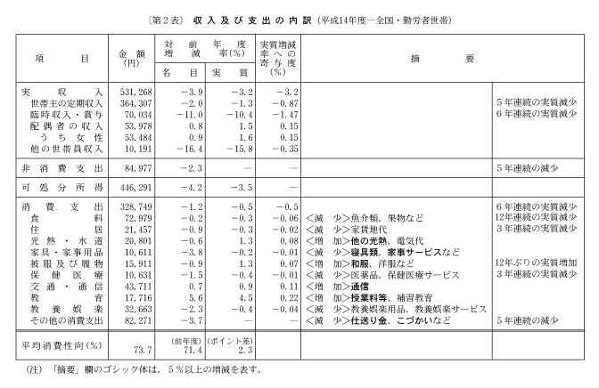 ・常 雇…四千五百七十二万人と、三十二万人(〇・七%)減、二十一か月連続の減少