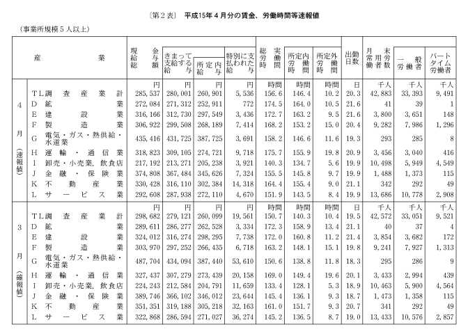(注) 日本標準産業分類の改訂に伴い、平成十五年一月結果の公表以降、新産業分類で表章している。