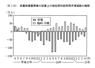 ・日 雇…百十五万人と、八万人(七・五%)増、二か月連続の増加