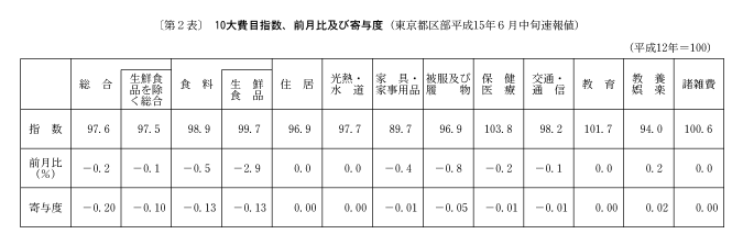 ◇六月の東京都区部消費者物価指数の動向