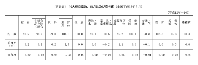 ◇五月の全国消費者物価指数の動向