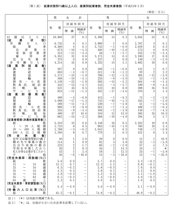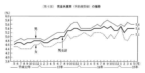 企業の人件費抑制姿勢などの労働力需要面の要因や、雇用のミスマッチなどの構造的要因から、完全失業率が高水準で推移するなど、厳しい雇用情勢が続いている。