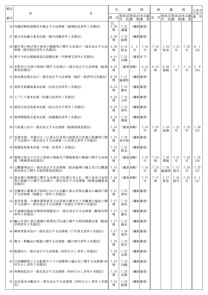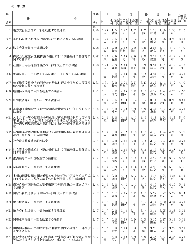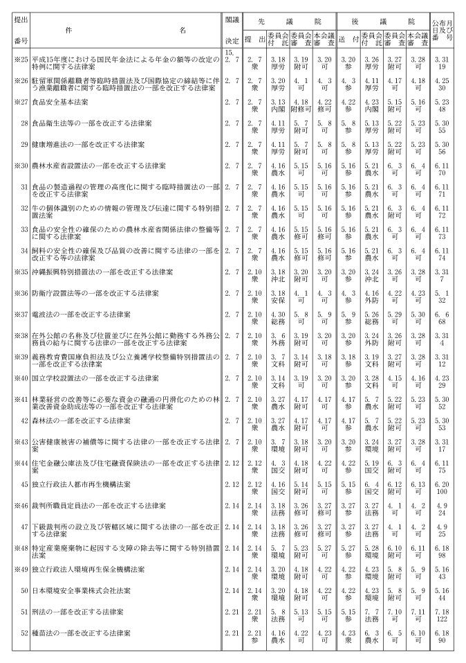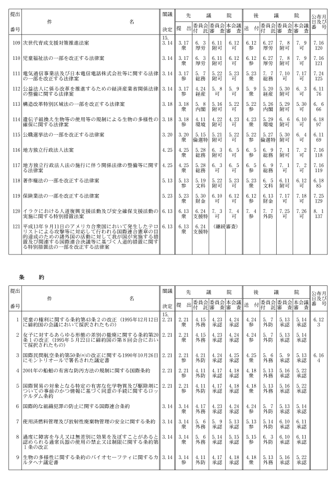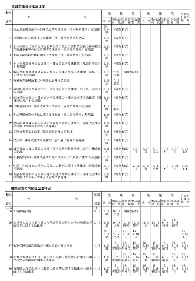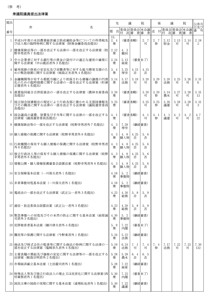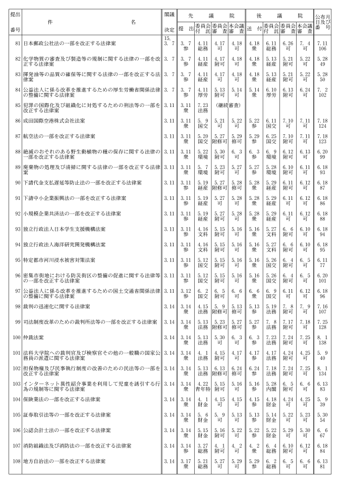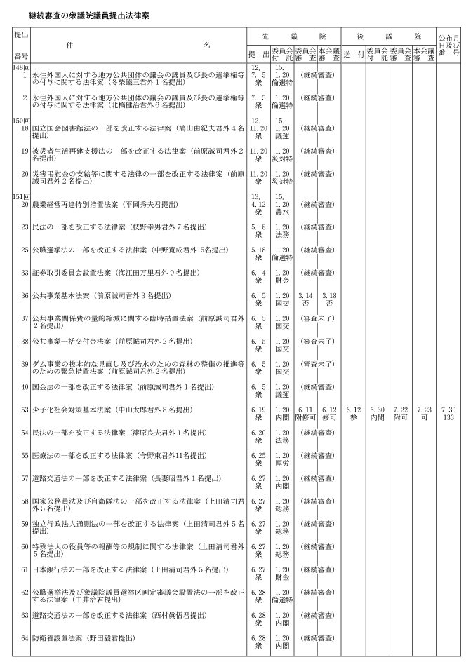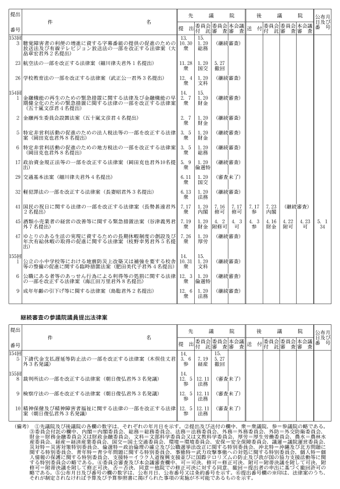 ▽第百五十六回国会で審議された法律案・条約の一覧表……………………………内閣官房