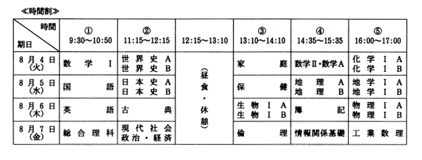 時間割については、次ページの表のとおりです。
