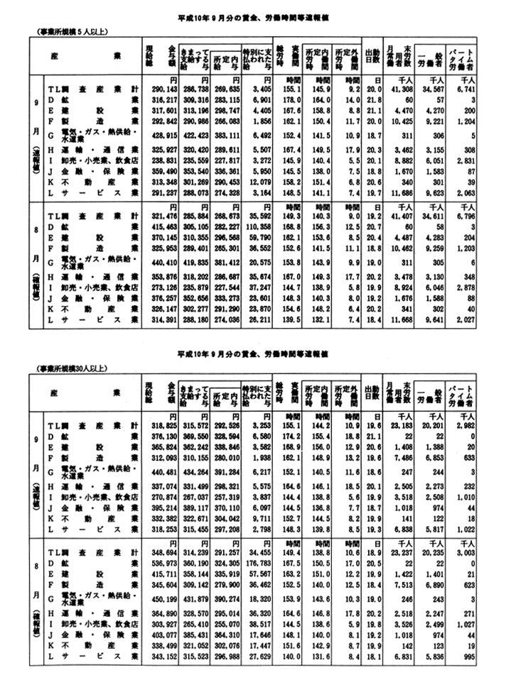 ▽ 毎月勤労統計調査(九月分結果速報)……………………労 働 省