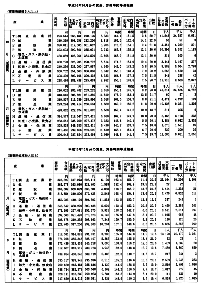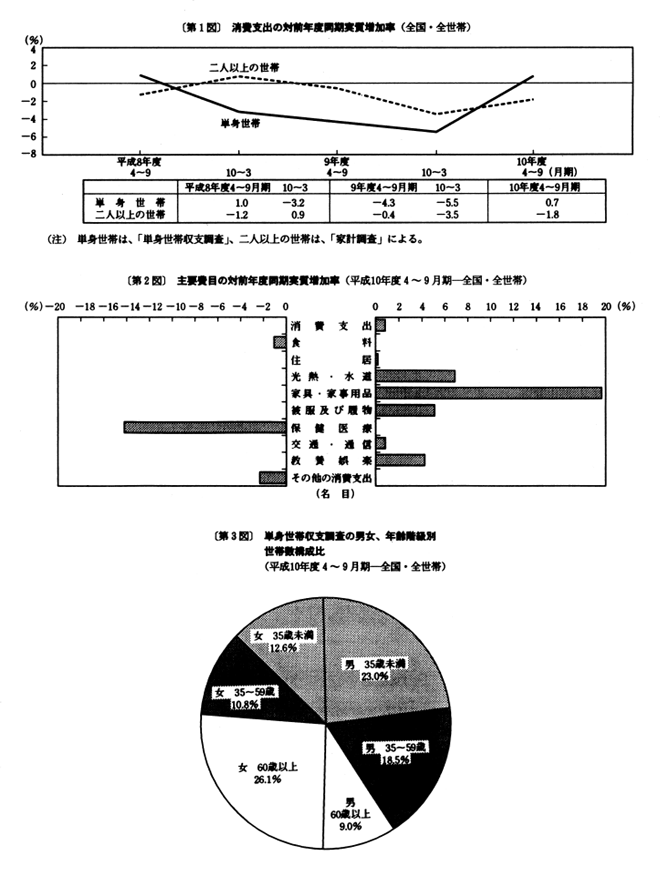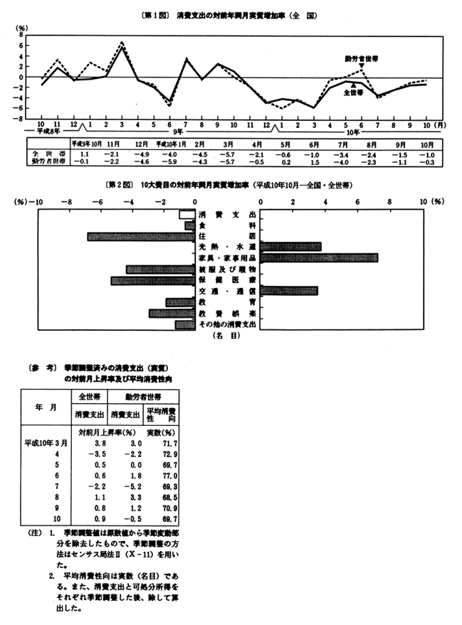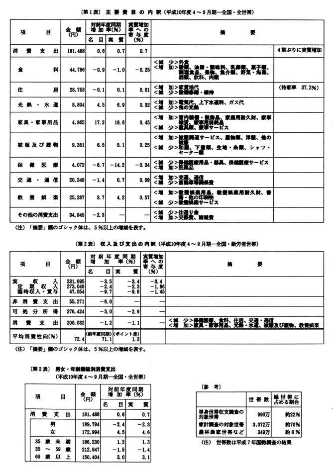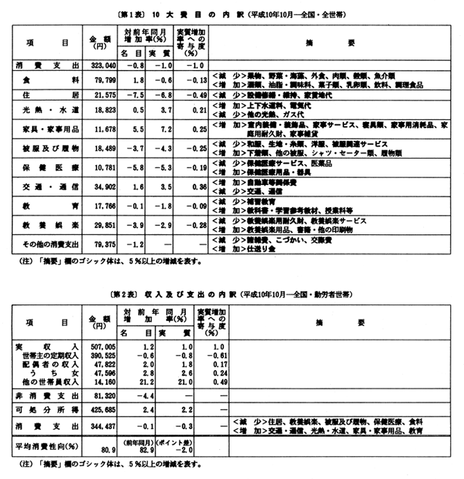 ▽ 平成十年十月分家計収支……………………………………総 務 庁