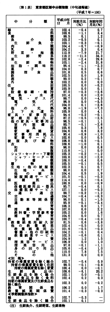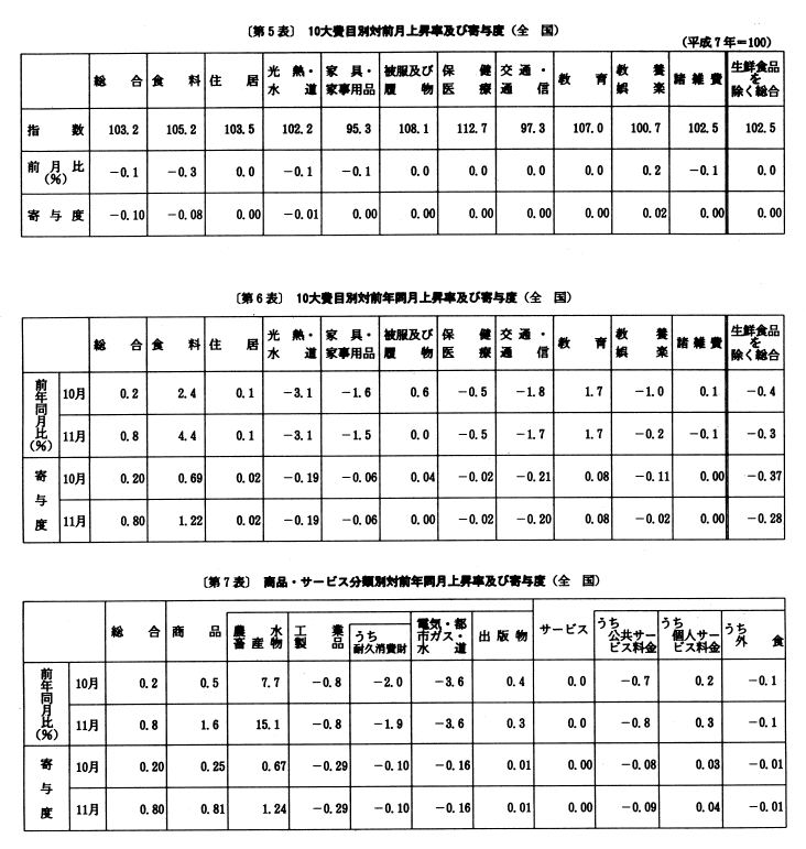 (注) 前年同月増減をみる場合、前年の十一月末一週間に「勤労感謝の日」の振り替え休日が含まれていることによる影響があり、注意を要する。