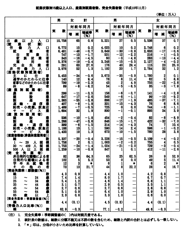 ▽ 労働力調査(平成十年十一月結果の概要)………………総 務 庁