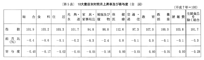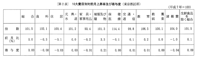 (2) 光熱・水道は一〇一・七となり、前月に比べ〇・二%の下落。