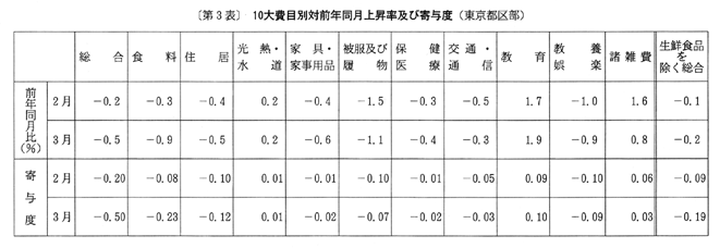 ◇三月の東京都区部消費者物価指数の動向