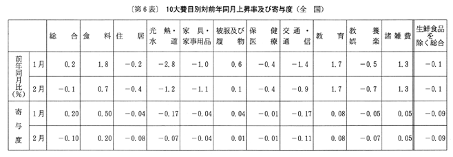 ◇二月の全国消費者物価指数の動向