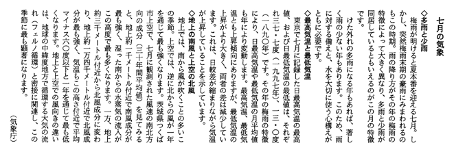 この他に、首都圏などの大都市では、地面の大部分がアスファルト等に覆われているため水分の蒸発による温度の低下がなく、夜間に気温が下がらない「ヒートアイランド」と呼ばれる現象や、必要以上の照明により、夜間星が見えにくくなったり、生態系への影響が懸念される「光害(ひかりがい)」と呼ばれる現象が起きている。