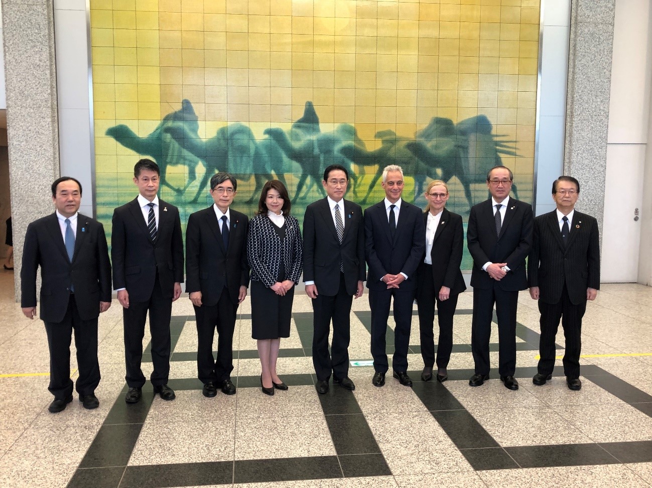寺田補佐官は、岸田総理の平和記念資料館の視察、平和記念公園での原爆死没者慰霊碑への献花に同行しました。その後、平和記念資料館に戻り、アメリカ合衆国のラーム・エマニュエル駐日大使による岸田総理への表敬に同席しました。