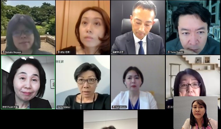 勉強会では、経済産業省より女性起業家支援パッケージについて、ロンドン証券取引所グループ(LSEG)リフィニティブ・ジャパン株式会社執行役員三浦氏より金融業界における女性の活躍について、大和証券サステナビリティ・ソリューション推進部長根岸氏よりアジアにおける女性労働参加率について、説明がなされました。