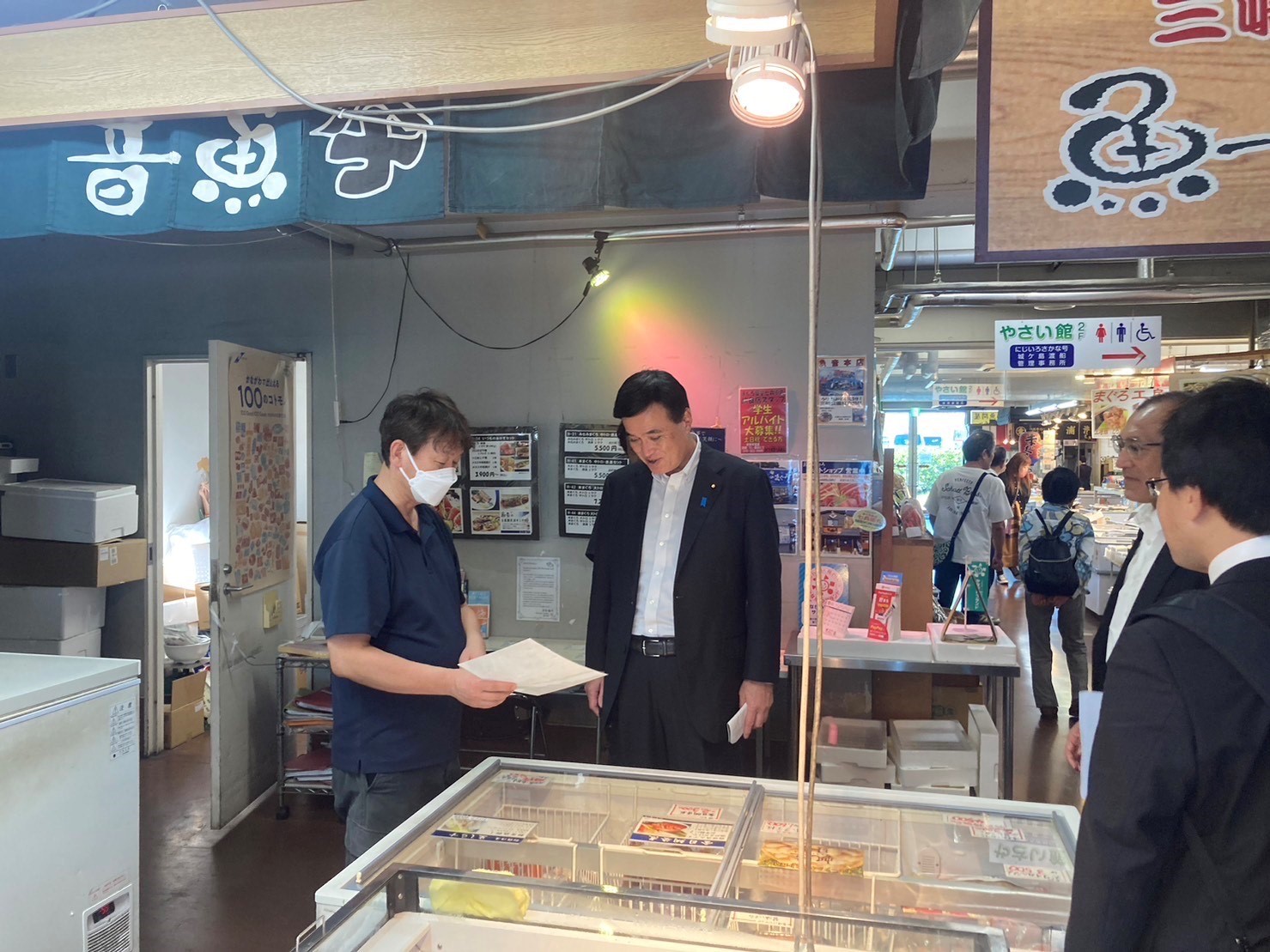 令和5年10月12日(木)、小里総理大臣補佐官は神奈川県三浦市を訪問しました。漁港や海に関する資源を利活用した海業(うみぎょう)の取組みや今後の展望について、吉田市長はじめ地元事業者の皆様と視察・意見交換を行いました。