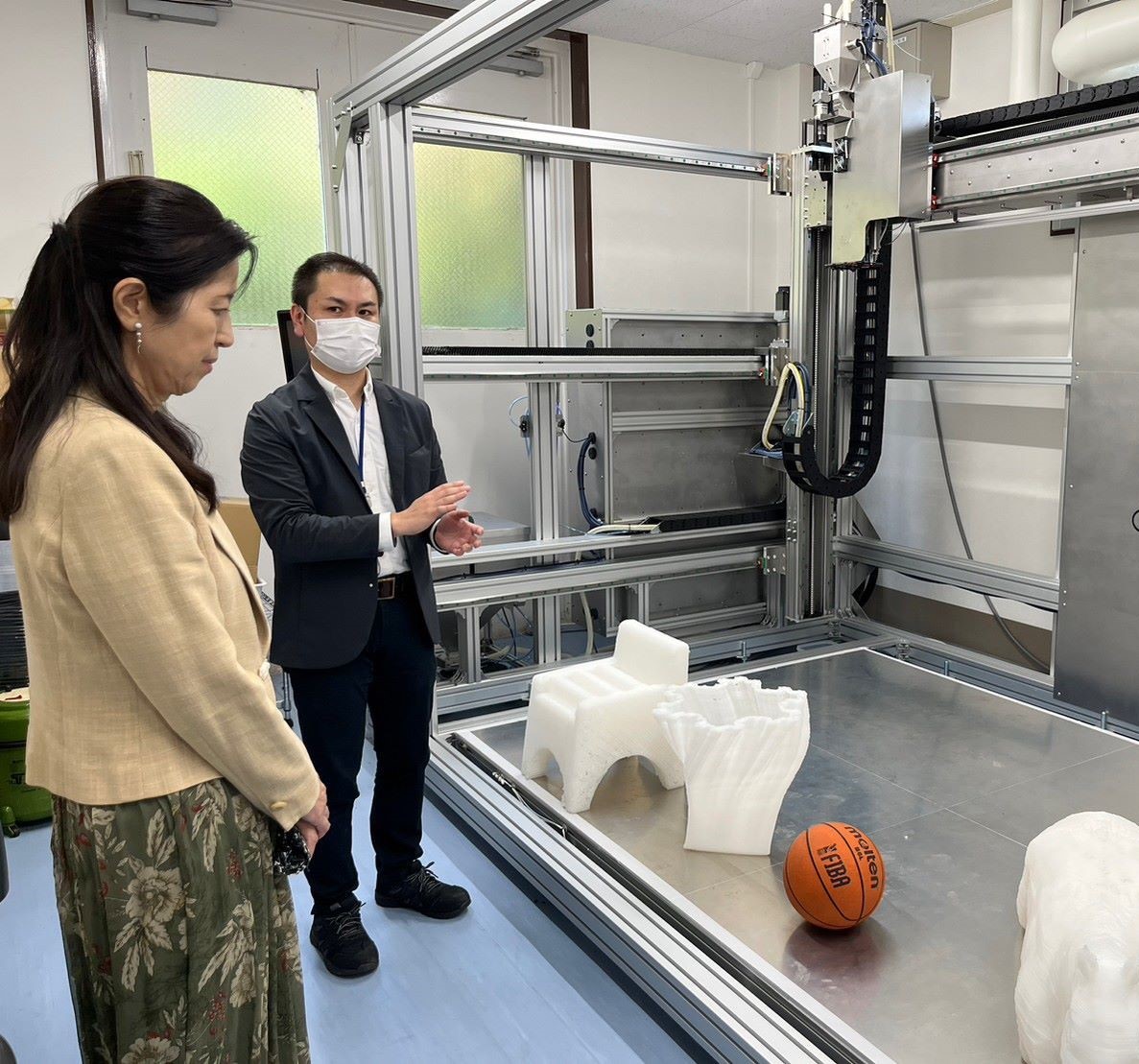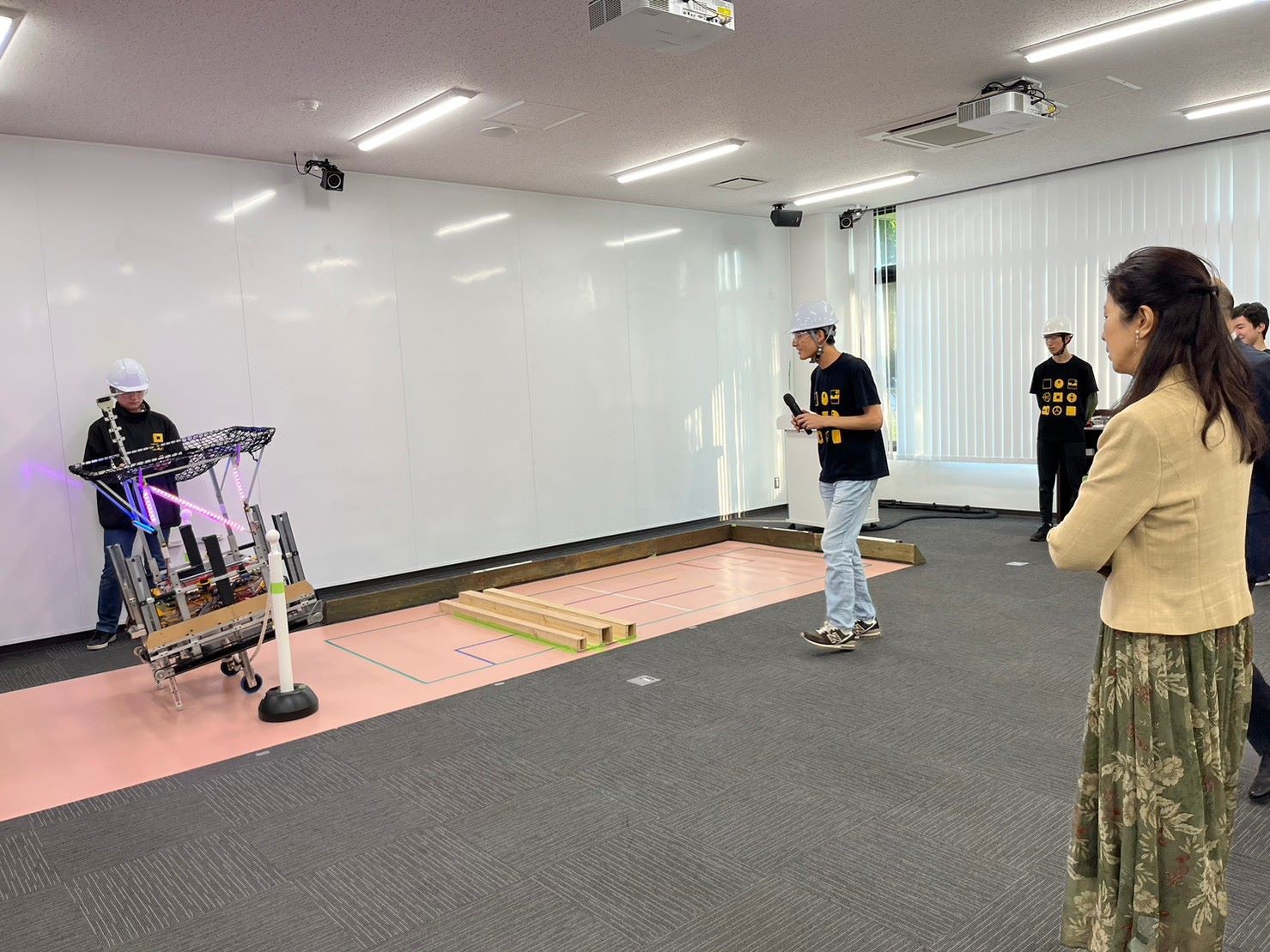 視察においては、ものづくり教育センター、社会実装教育研究センターの2つの施設を見学した後、ロボコンゼミ学生による高専ロボコン2023関東甲信越地区大会に出場した2台のマシンのデモンストレーションを見学しました。