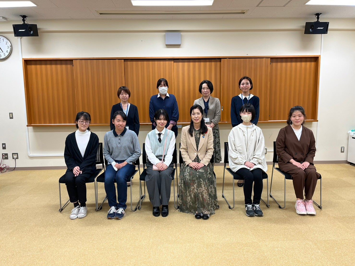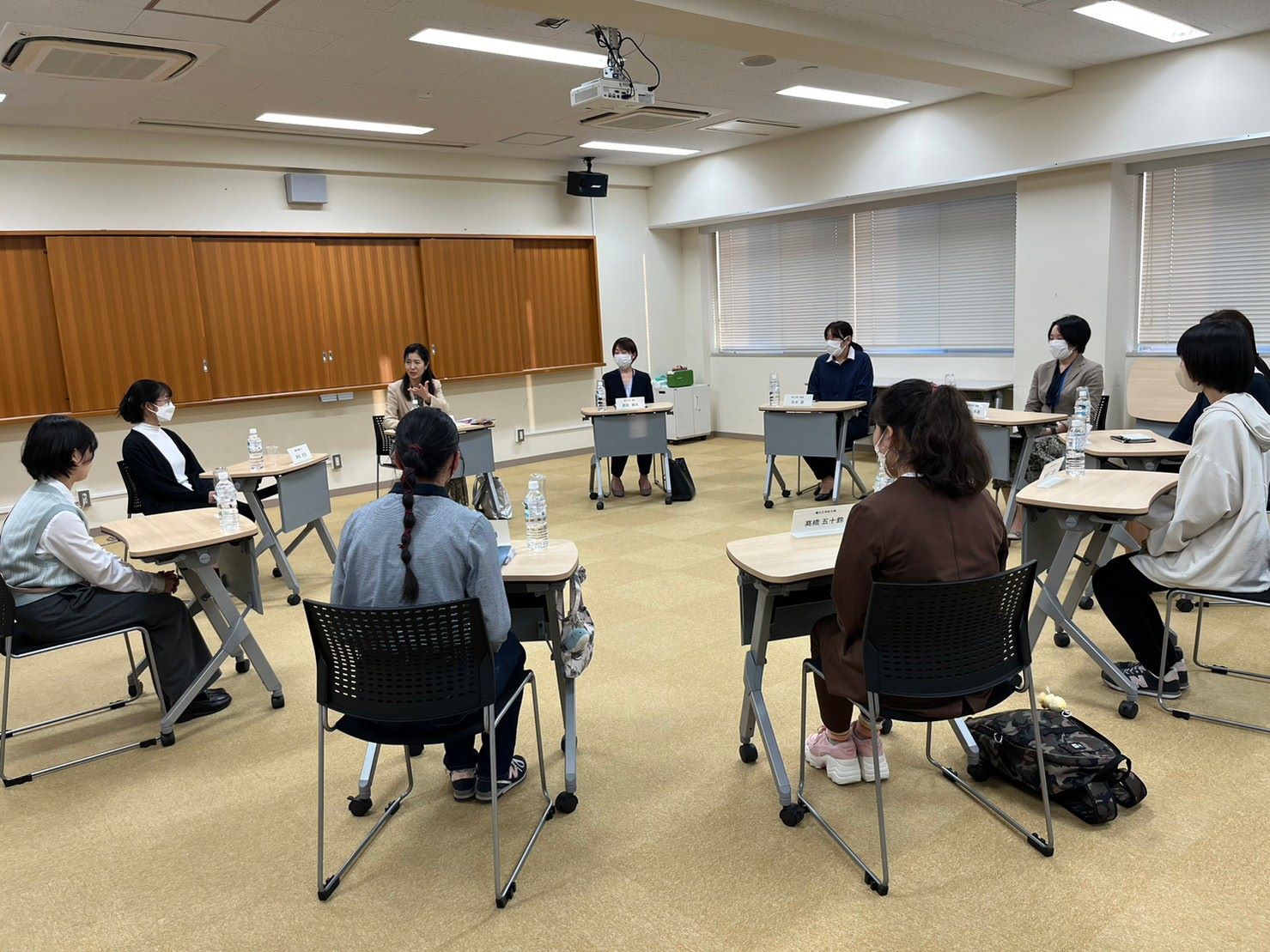 車座対話には、女子学生5名と女性教員4名に御参加いただきました。学生の方々には寮生活の状況や勉強・研究のやりがい、高専進学を決めたきっかけ、今後の進路選択等について、教員の方々には女子高専生の強みや期待、高専における研究と家庭の両立状況や支援策等についてお話を伺い、意見交換を行いました。