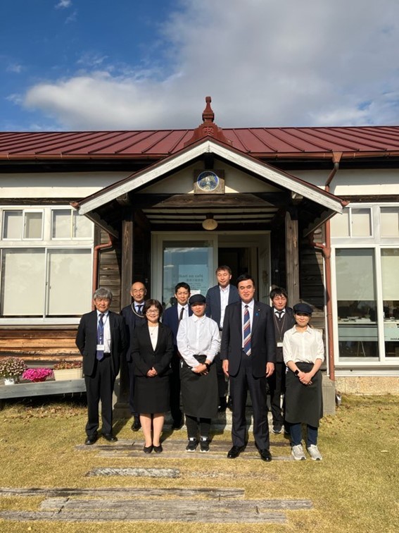 小学校の校舎を改修し、介護施設とともに地域の方々の憩いの場となるカフェとして運営されている「hikari no café」様を視察し、今後の農福連携にもつながる取組の展望をお伺いました。