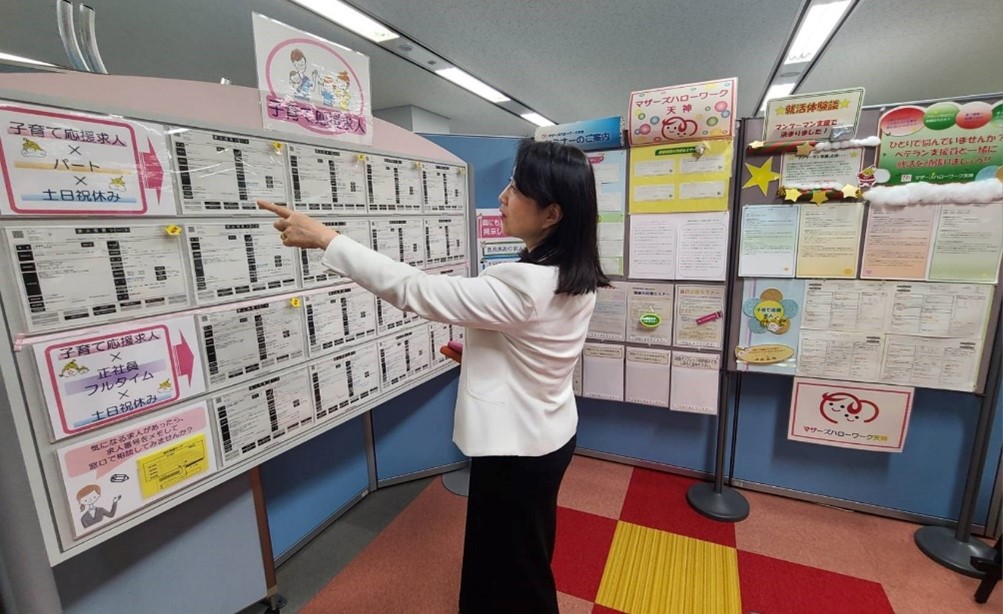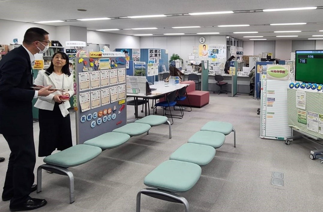 福岡労働局を訪問し、労働局全体の業務概況の説明を伺うとともに、福岡中央労働基準監督署、ハローワークプラザ福岡を視察し、意見交換をしました。ハローワークプラザ福岡では、キッズルームや授乳室も完備されたマザーズハローワークを視察したほか、就職氷河期の方や、外国人の方を対象にした専門窓口も視察しました。
