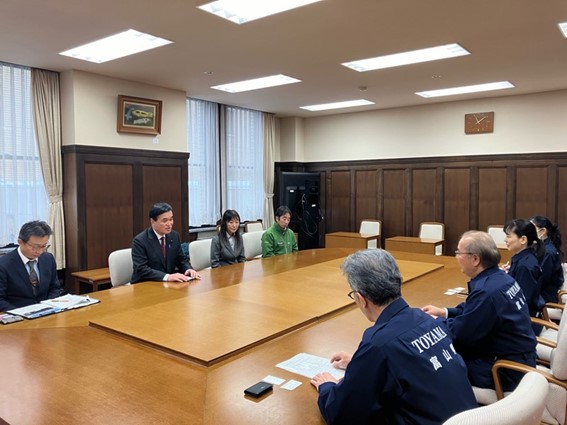 富山県庁で、新田知事、横田副知事らと、クマ出没による被害と対策の現状について意見交換を行いました。