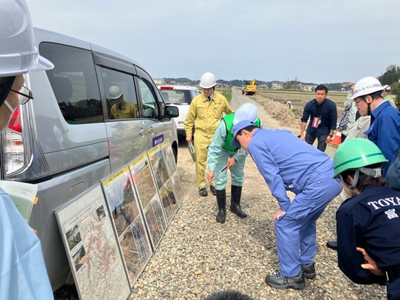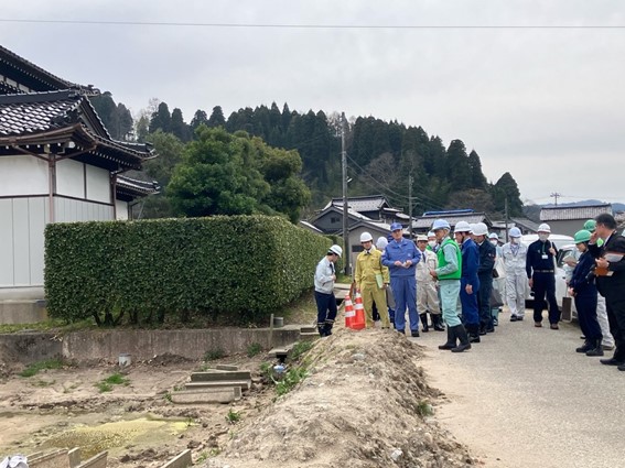 国営かんがい排水事業「氷見地区」において、農業用パイプラインの離脱、道路・農地の陥没、土砂の流出等について被害状況を確認するとともに、応急復旧作業の状況を視察しました。