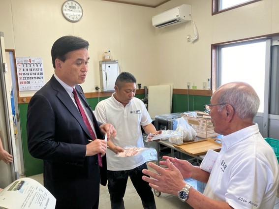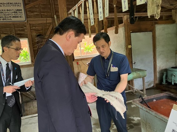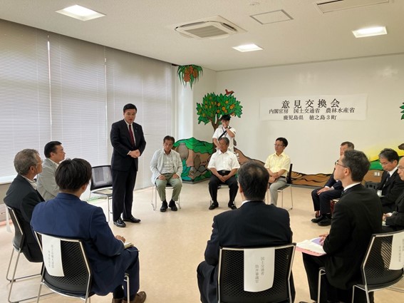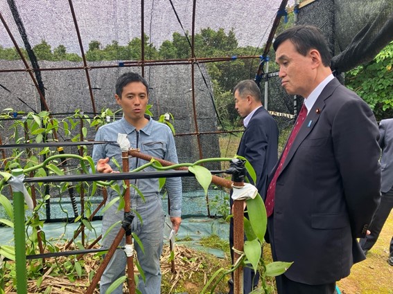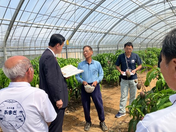 令和6年5月1日~2日、小里総理大臣補佐官は鹿児島県奄美群島を訪問し、ジビエ加工施設や、マンゴー、コーヒー、バニラビーンズ、海産物等の特色ある一次産品の生産・販売の取組み、地域おこし協力隊OB等の移住者による地域活性化・地域産業の担い手づくりの取組み、農福連携の取組み、伝統産業である大島紬など地域の観光拠点施設を視察するとともに、地域の主要産業である農業と観光業を代表する方々と車座対話を行いました。