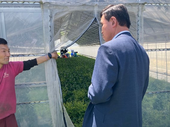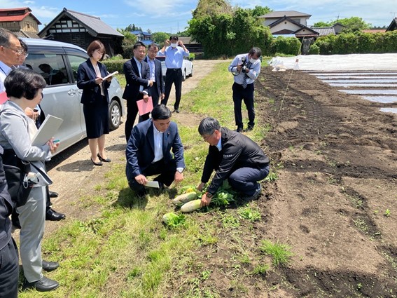 令和6年5月15日、小里総理大臣補佐官は茨城県常陸太田市を訪問し、有機農産物の生産に取り組む農業者や、JAひたちの圃場等を視察するとともに、こうした生産者の皆様や、地域ぐるみでの有機農業の取組みを推進する常陸太田市の皆様と、有機農業の推進に向けた課題等について車座対話を行いました。