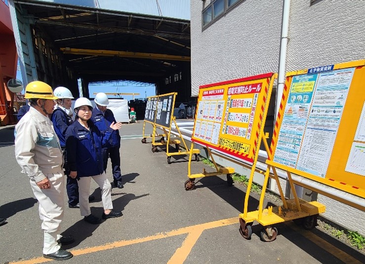 技能実習生など外国人労働者も多数在籍していますが、ピクトグラム等を用いて、分かりやすい注意喚起表示を行うなど、安全衛生対策に非常に力をいれて取り組まれています。