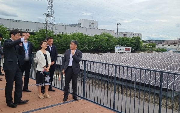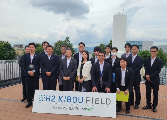 パナソニックの草津工場を訪問し、家庭用燃料電池と業務用の純水素燃料電池の製造の様子や、燃料電池の工場で消費する電力を100%再エネで賄う実証の現場を視察しました。