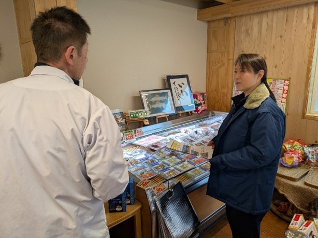 また、地震で大きな被害を受けた富来地区を訪問し、仮設住宅や仮設店舗を視察しました。仮設店舗を運営する事業者の方々から、復興への期待と不安についてもお話を伺いました。