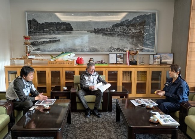 事業の立て直しに向けて従業員の雇用維持にも取り組まれており、県の内外へ従業員の出向を行っています。出向先とのマッチングの難しさや、1年で期限を迎える雇用調整助成金の今後についても、意見交換をいたしました。併せて、なりわい再建支援補助金についての御意見も伺いました。