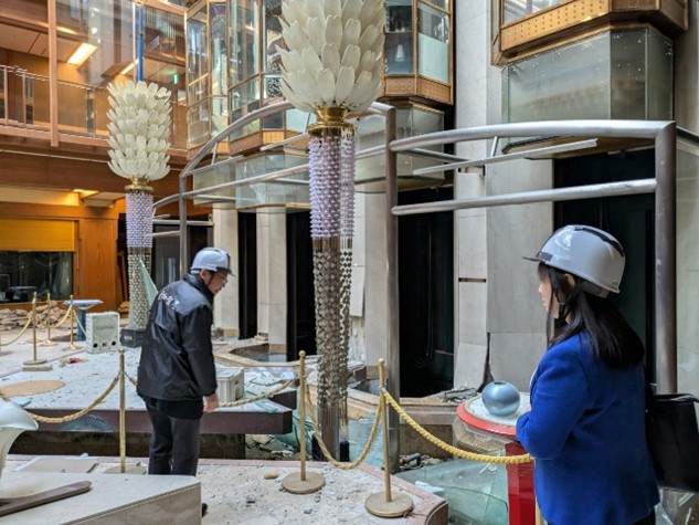 和倉温泉 加賀屋は、1階ロビー部分などを中心に建物の内装が大きく損壊し、海水が浸水している部屋もあることから、現在も旅館事業を休業されています。