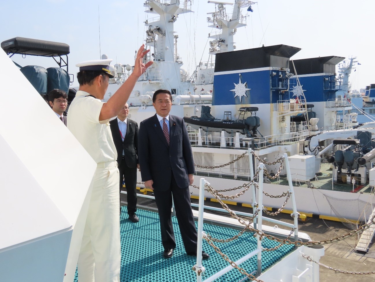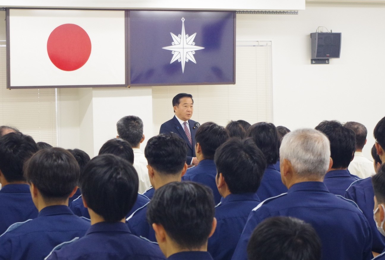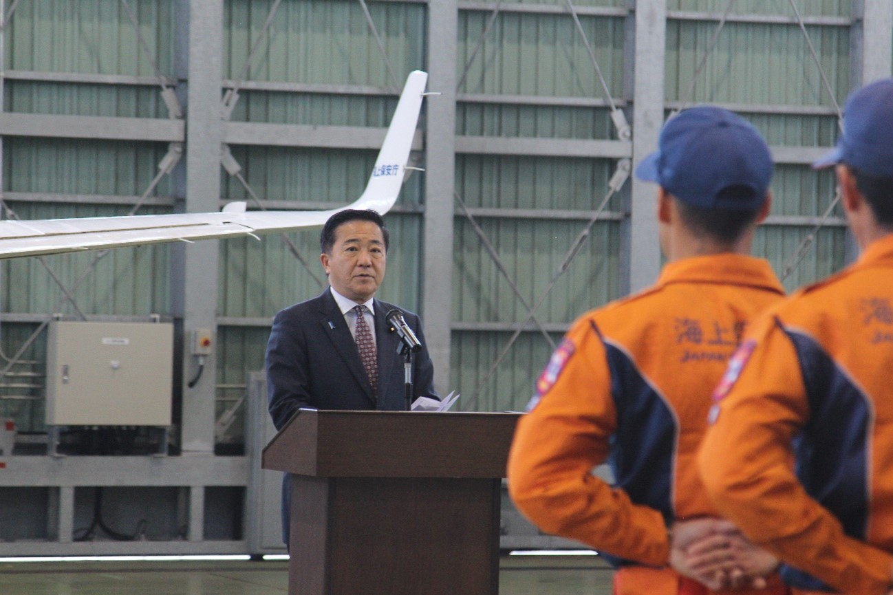 4月4日、石垣市に所在する石垣海上保安部及び石垣航空基地をそれぞれ視察し、各種業務や巡視船やえやまについて説明を受けるとともに、同庁職員を激励しました。