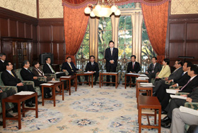 会合において、菅総理は「我が国は言うまでもなく四方を海に囲まれており、管轄する海域の広さは世界でも第6番目という広さになっています。今回の鉱業法の改正はこうした中での主権的な権利を適切に行使していく上で大変重要な法改正となります。広大な海域について今後いろいろな可能性を持って、これを活用して行くために各省庁が連携して取り組んでいただきたい。」と述べました。
