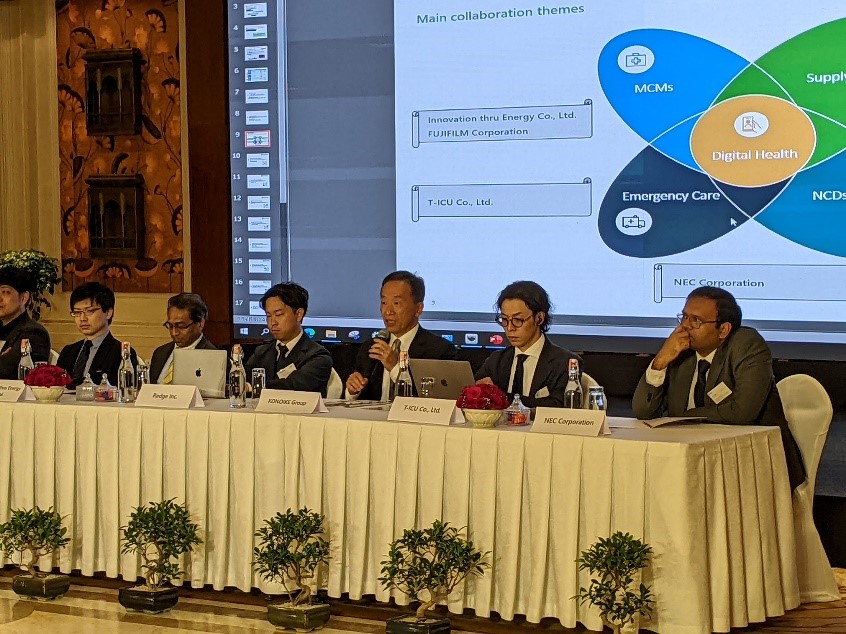 At the conference, eight Japan companies (NEC Corporation, Vitaars Co., Ltd. (formerly T-ICU), Konoike Medical Co., Ltd., Redge,Inc., Innovation thru Energy Co., Ltd., Fujifilm Corporation, Instalim, Inc., Olympus Corporation) introduced their products and services in five cooperative fields with a view to solving health issues in India. A lively exchange of views was held on India's health issues and measures to solve them.