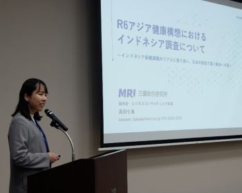 第一部では、三菱総合研究所より令和6年度アジア健康構想事業におけるインドネシア調査結果、有識者として東アジア・アセアン経済研究センター(ERIA)の上地真泉氏よりインドネシアにおける保健課題・今後の展望、JICA専門家の佐々木正大氏よりインドネシア政府が取り組む医薬品・医療機器の関係施策等についてご講演いただきました。